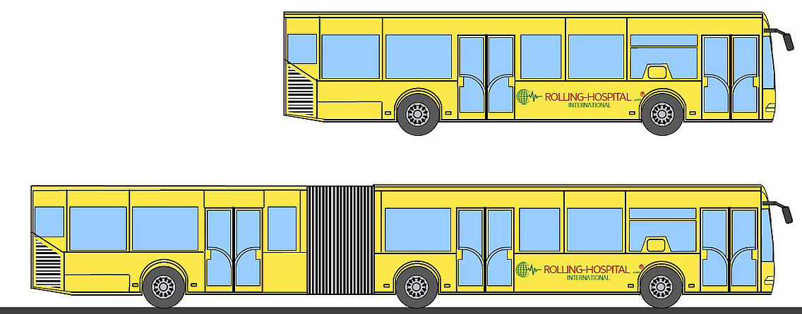 A total of six articulated buses with a length of 18 metres and six more with a length of 12 metres are being used as mobile warm buses. The Ukrainian citizens then have the opportunity to warm up and get a hot soup or hot drink. A TV supplied by a satellite receiver also provides them with information, allowing them to watch the news. Smartphones and other mobile device can be charged at a series of USB sockets. A two-burner gas cooker, including filled gas bottles, as well as an awning, are also part of the equipment. Thus, it is possible to cook outdoors, and the tent serves as a vestibule. The existing seating of the buses has been maintained. This means that each warm room has between 37 and 52 seats. This also has the benefit that, when the situation in Ukraine has calmed down, the buses can again be used for public transport without the need for major conversion work.