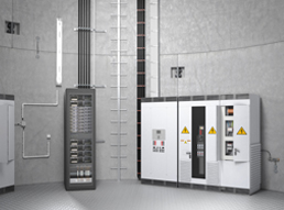 Има различни възможности за безопасно реализиране на вертикално захранване. По принцип обаче кабелите или проводниците трябва да бъдат закрепени чрез подходящи мерки на разстояния, ако техният начин на полагане без опора навсякъде.