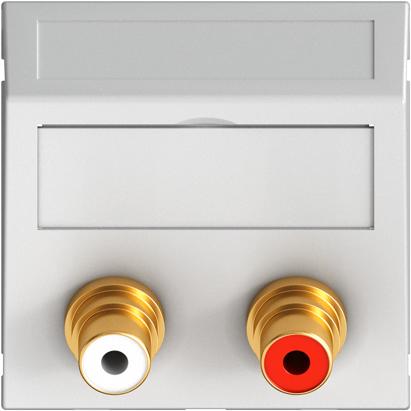 Описание на продуктаМултимедиен носещ елемент с две чинч-букси за аудио R / L, изход под наклон, с поле за надписване, две чинч-букси (RCA), цветово кодиране червено/бяло. Носеща платка със застопоряващо закрепване, подходяща за хоризонтало и вертикално вграждане в системната среда.