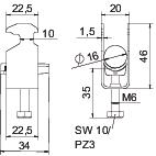 Описание на продуктаBBS-скоба Т-образен захват, притискаща пластина от полипропилен. За вертикален и хоризонтален монтаж на 1 кабел към C-профилна шина. За ширината на шлица 16-17 мм С болт на притискащата пластина, универсална шестостенна глава SW10, с прав и кръстат шлиц. Подходящи за монтаж на закрито и открито. Препоръчителна е употребата на насрещна пластина.