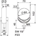 Описание на продуктаBBS-скоба Т-образен захват, притискаща пластина от полипропилен. За вертикален и хоризонтален монтаж на 1 кабел към C-профилна шина. За ширината на шлица 16-17 мм С болт на притискащата пластина, универсална шестостенна глава SW10, с прав и кръстат шлиц. Подходящи за монтаж на закрито и открито. Препоръчителна е употребата на насрещна пластина.