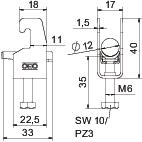 Описание на продуктаBBS-скоба U-образен захват, притискаща пластина от полипропилен. За вертикален и хоризонтален монтаж на 1 кабел към C-профилна шина. За шлиц 18-12 мм. С болт на притискащата пластина, универсална шестостенна глава SW10, с прав и кръстат шлиц. Подходящи за монтаж на закрито и открито. Препоръчителна е употребата на насрещна пластина.