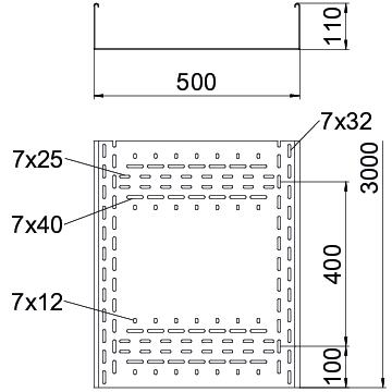 Описание на продуктаТежка, позволяваща стъпване кабелоносеща система BKRS с перфорация на дъното, височина на борда 110 мм.