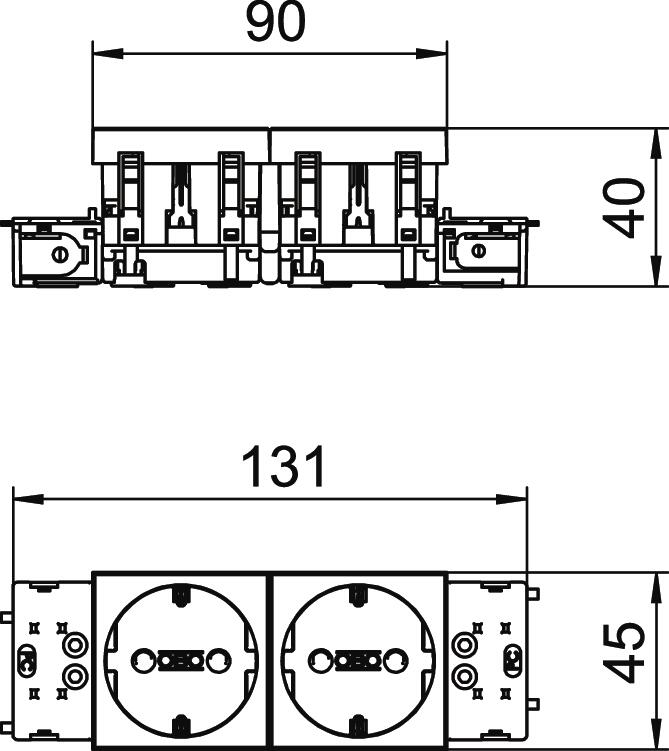 Описание на продуктаШуко-контакт, със странично свързване, с повишена защита при допир, с щепселни клеми, 2-полюсни, със свързващи клеми по IEC 60884-1, приложение в система канали за вграждане на контакти Rapid 45.