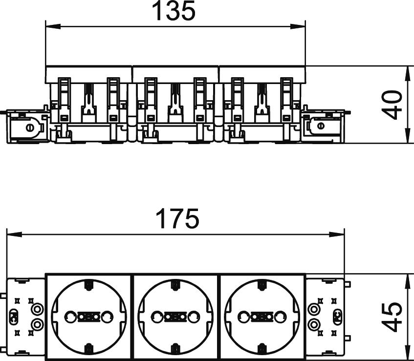 Описание на продуктаШуко-контакт, със странично свързване, с повишена защита при допир, с щепселни клеми, 2-полюсни, със свързващи клеми по IEC 60884-1, приложение в система канали за вграждане на контакти Rapid 45.