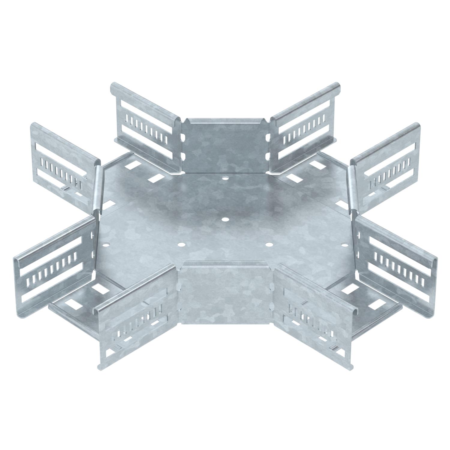 Описание на продуктаКръстовидно отклонение, хоризонтално, фасонен елемент за кабелни скари с височина на борда 60 mm, с бързо свързване или с болтова връзка. Безболтов монтаж посредством клемен съединител или болтова връзка с коларски болт FRS и комбинирана гайка М6. Приложима за външен и вътрешен монтаж. Свързващите елементи се поръчват отделно.