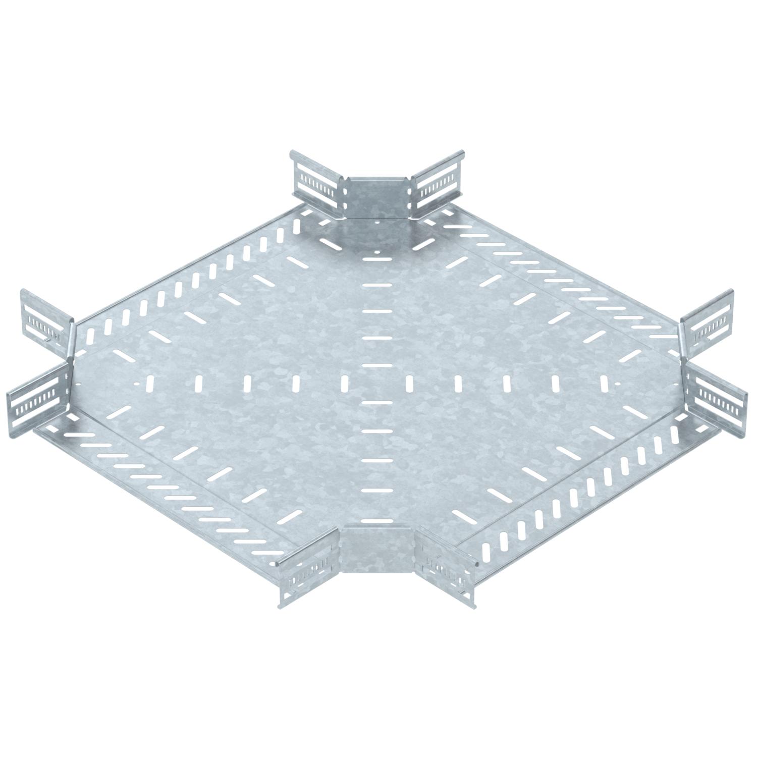 Описание на продуктаКръстовидно отклонение, хоризонтално, фасонен елемент за кабелни скари с височина на борда 60 mm, с бързо свързване или с болтова връзка. Безболтов монтаж посредством клемен съединител или болтова връзка с коларски болт FRS и комбинирана гайка М6. Приложима за външен и вътрешен монтаж. Свързващите елементи се поръчват отделно.