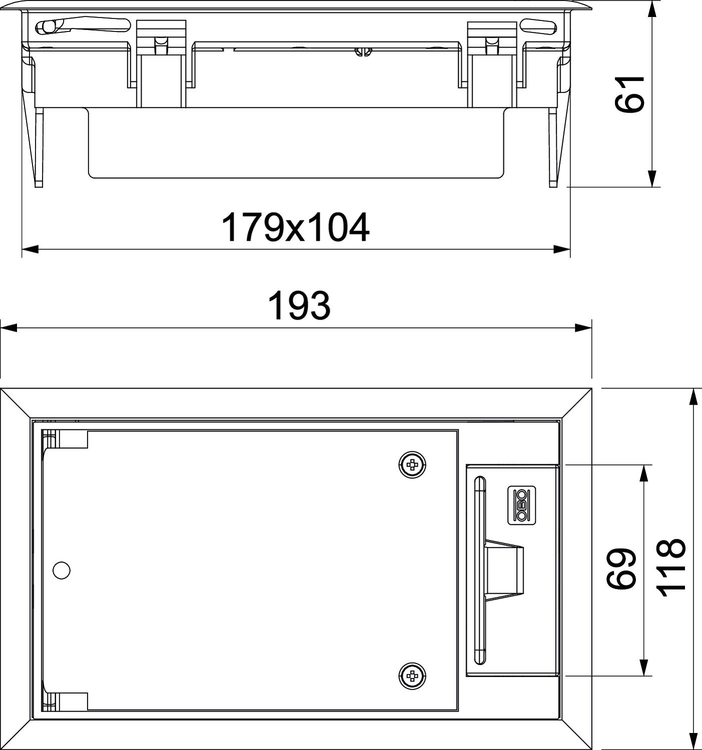 Описание на продуктаКутия за вграждане на контакти, със захващаща скоба, за до 3 единични контакта Modul 45 в един универсален носач UT3, приложение в системни подове на закрито.