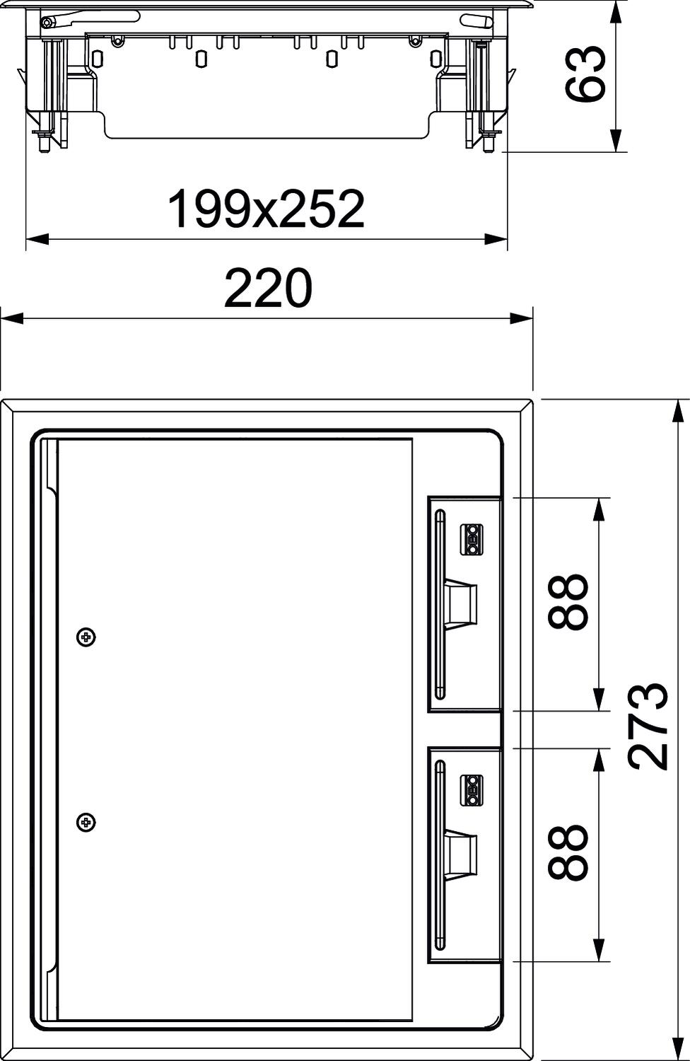 CO2 отпечатък (GWP) от люлка до портата 1,7847 кг CO2e / 1 брой Брой на конзолите 3 Брой на контактите, които могат да се вграждат 9 Вертикално натоварване, голяма повърхност до 3 000 N Вертикално натоварване, малка повърхност до 2 500 N Височина на пода мин. 73 mm Възможност за монтаж на уплътнение не Външен размер - дължина 220 mm Външен размер - ширина 273 mm Дебелина на подовата настилка 5 mm Дълбочина на вграждане 73 mm Изпълнение правоъгълно Изпълнение за тежки товари не Изпълнение кабелен излаз Подвижен отвор за шнура Материал Полиамид Механизъм за отваряне Захващаща скоба Номинален размер на модулите за вграждане на контакти 6 Носач за конзоли да Обхват на захващане D макс. 31 mm Обхват на захващане D мин. 9 mm Подходящ за вграждане в двойни подове да Подходящ за вграждане в кухи подове да Подходящ за мокро почистване не Подходящ за подподов канал да Подходящи за подподов канал с монолитно покритие да Подходящи за подравнен с пода затворен подподов канал не Почистване на пода сух Предпазни рамки на подовата настилка да Размер h 73 mm Размер за вграждане - дължина 199 mm Размер за вграждане - ширина 252 mm Размери 273x220x61 Разрешителни VDE Рамково изпълнение Предпазна рамка за подова настилка С вдлъбнатина за подова настилка да Степен на защита (IP) в състояние на покой IP40 Степен на защита (IP) при употреба IP20 Степен на защита IK код IK08 Тип система на вграждане MT3 / GB2 Цвят графитено черно; RAL 7011 - Всички типове
