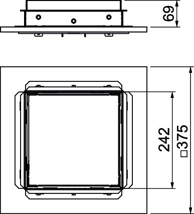 Height-adjustable cassette with blanking cover. The scope of delivery contains an aluminium screed protection cover (grindable), a suitable mounting lid to fix the cassette lined body and an ISO apron for decoupling from the underfloor connection socket.
