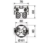 Описание на продуктаКонзола за контакти, за монтаж под мазилка, с уплътнителни кабелни мембрани, монтажна дълбочина мин. 66 мм.