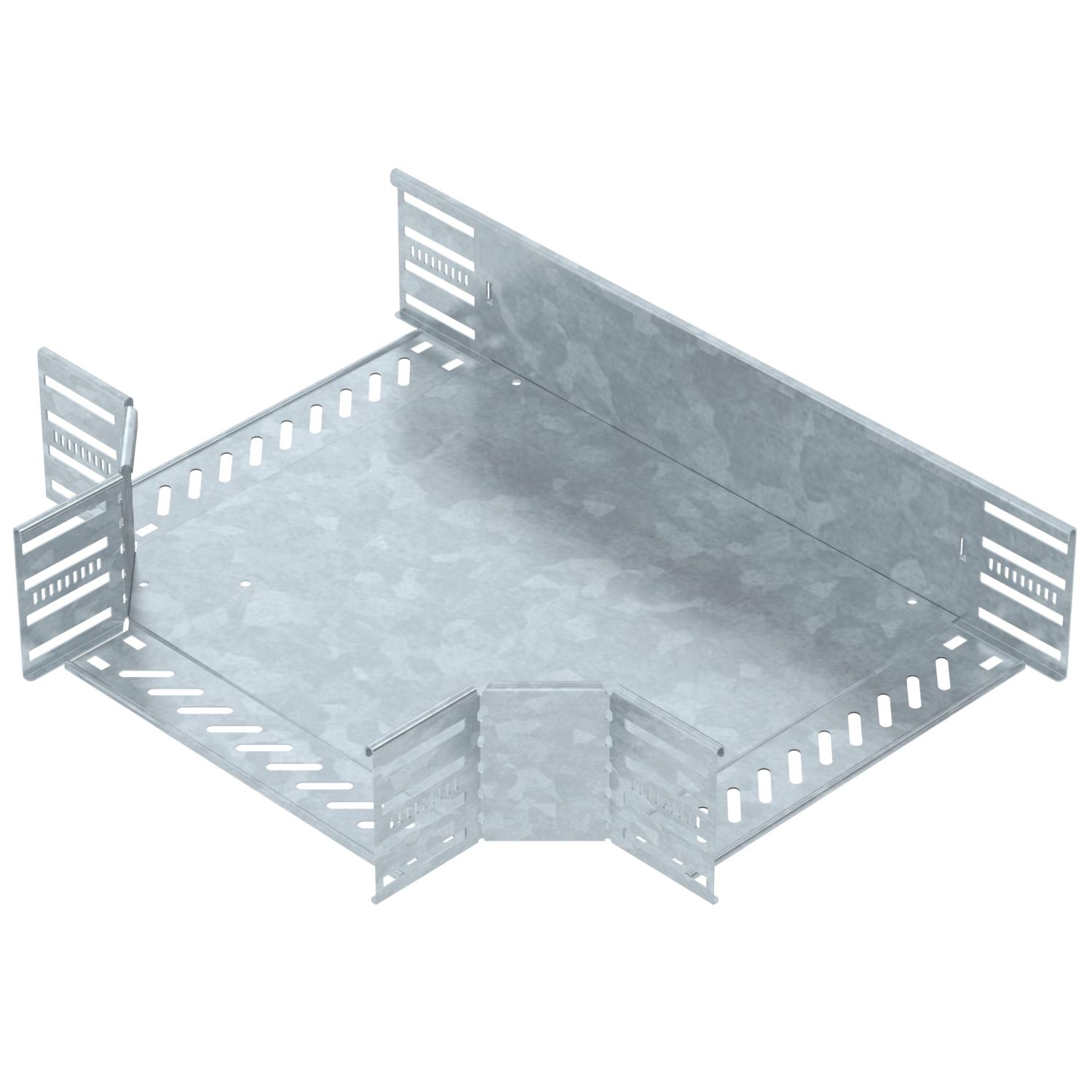 Описание на продуктаТ-отклонение, фасонен елемент за кабелни скари с височина на борда 110 mm, с бързо свързване или с болтова връзка. Безболтов монтаж посредством клемен съединител или болтова връзка с коларски болт FRS и комбинирана гайка М6. Приложима за външен и вътрешен монтаж. Свързващите елементи се поръчват отделно.