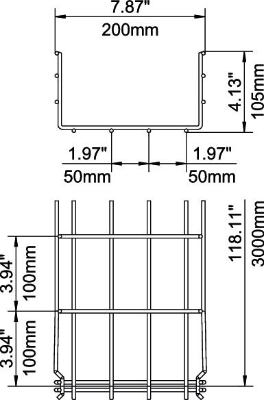 За телените скари не са необходими допълнителни свързващи компоненти, те просто се поставят една в друга. Размерът на отворите е 50 x 100 мм.