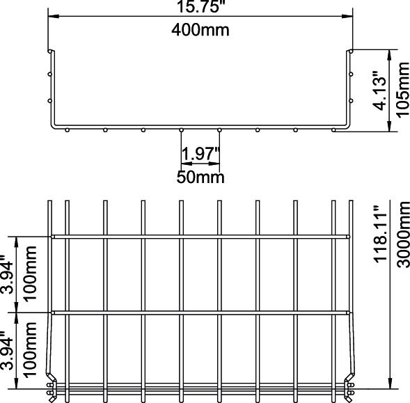 За телените скари не са необходими допълнителни свързващи компоненти, те просто се поставят една в друга. Размерът на отворите е 50 x 100 мм.