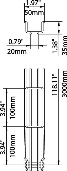 Не са необходими допълнителни свързващи елементи, скарите просто се поставят една в друга. Размерът на отворите е 50 x 100 мм (с изключение на GRM 55/50 = 20 x 100 мм).