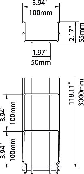 За кабелната скара не са необходими допълнителни свързващи компоненти, те просто се поставят една в друга. Ширината на ухото възлиза на 50 x 100 mm (изключение GRM 55/50 = 20 x 100 mm).