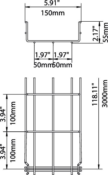 За кабелната скара не са необходими допълнителни свързващи компоненти, те просто се поставят една в друга. Ширината на ухото възлиза на 50 x 100 mm (изключение GRM 55/50 = 20 x 100 mm).