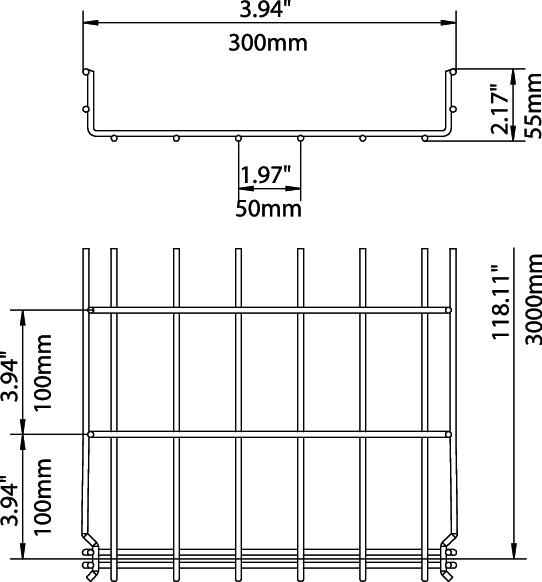 За кабелната скара не са необходими допълнителни свързващи компоненти, те просто се поставят една в друга. Ширината на ухото възлиза на 50 x 100 mm (изключение GRM 55/50 = 20 x 100 mm).