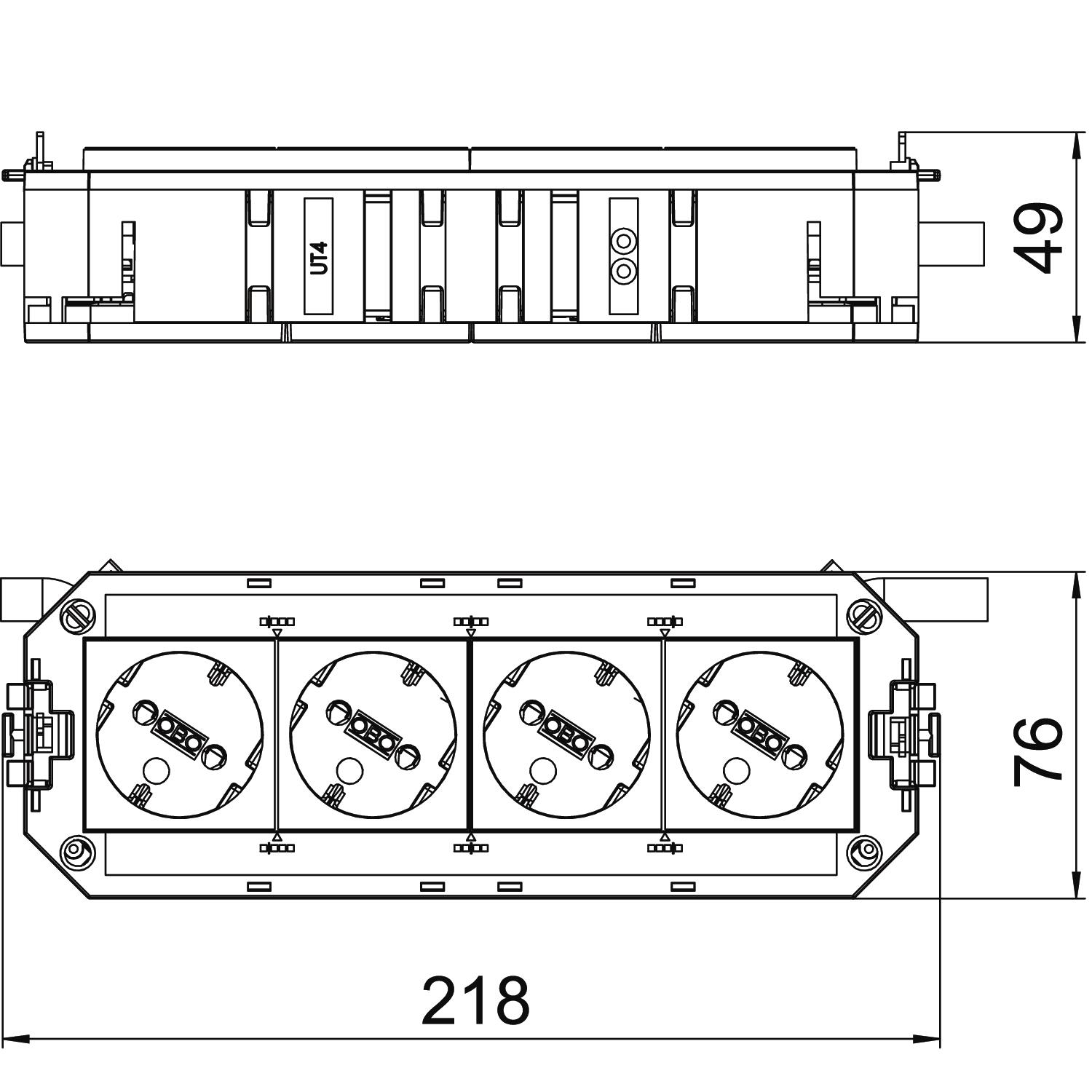 Готов за монтаж универсален носач UTC4, с 4 предварително инсталирани защитни контакта 33° - 2 бели и 2 оранжеви, (с пренапреженова защита Тип 3 по DIN EN 61643-11), 250 V~ 16 A.